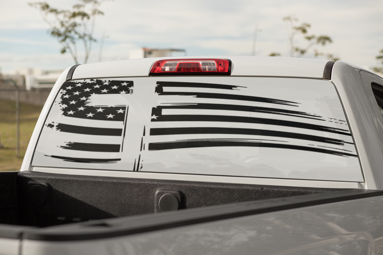 Truck Decal Back Window - Distressed Flag with Cross- perforated vinyl TBW047
